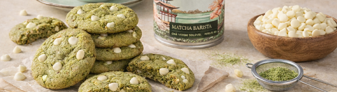 Estes cookies de matcha com chocolate branco são a escolha perfeita para quem busca uma receita fácil, sofisticada e cheia de sabor.
